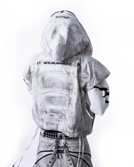 <IT's N0T BLACK & WHITE> LEATHER VEST - POLLUTED WHITE