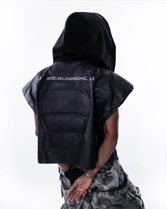 <IT's N0T BLACK & WHITE> LEATHER VEST - BLACK