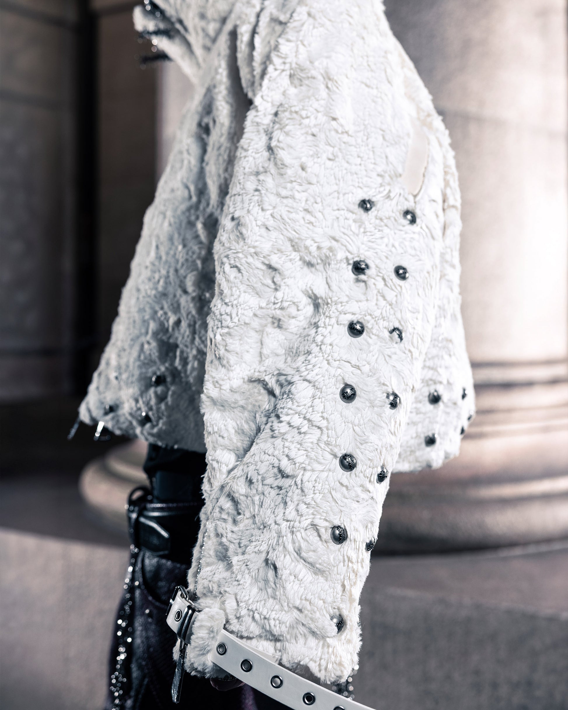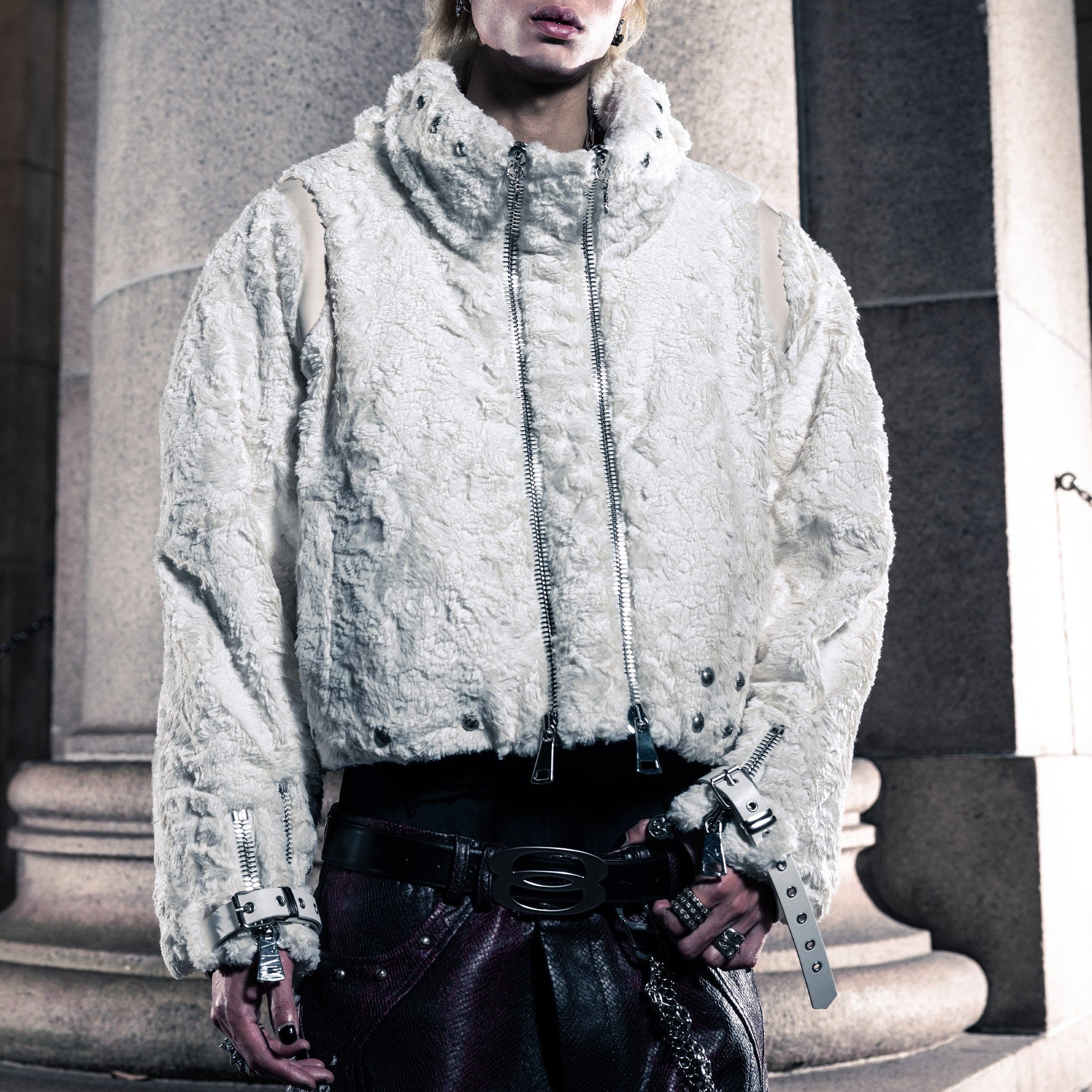 DOUBLE SLIDERS & DOUBLE ZIPPER BEIGE FLEECE JACKET (PRE-ORDER,LIMITED)