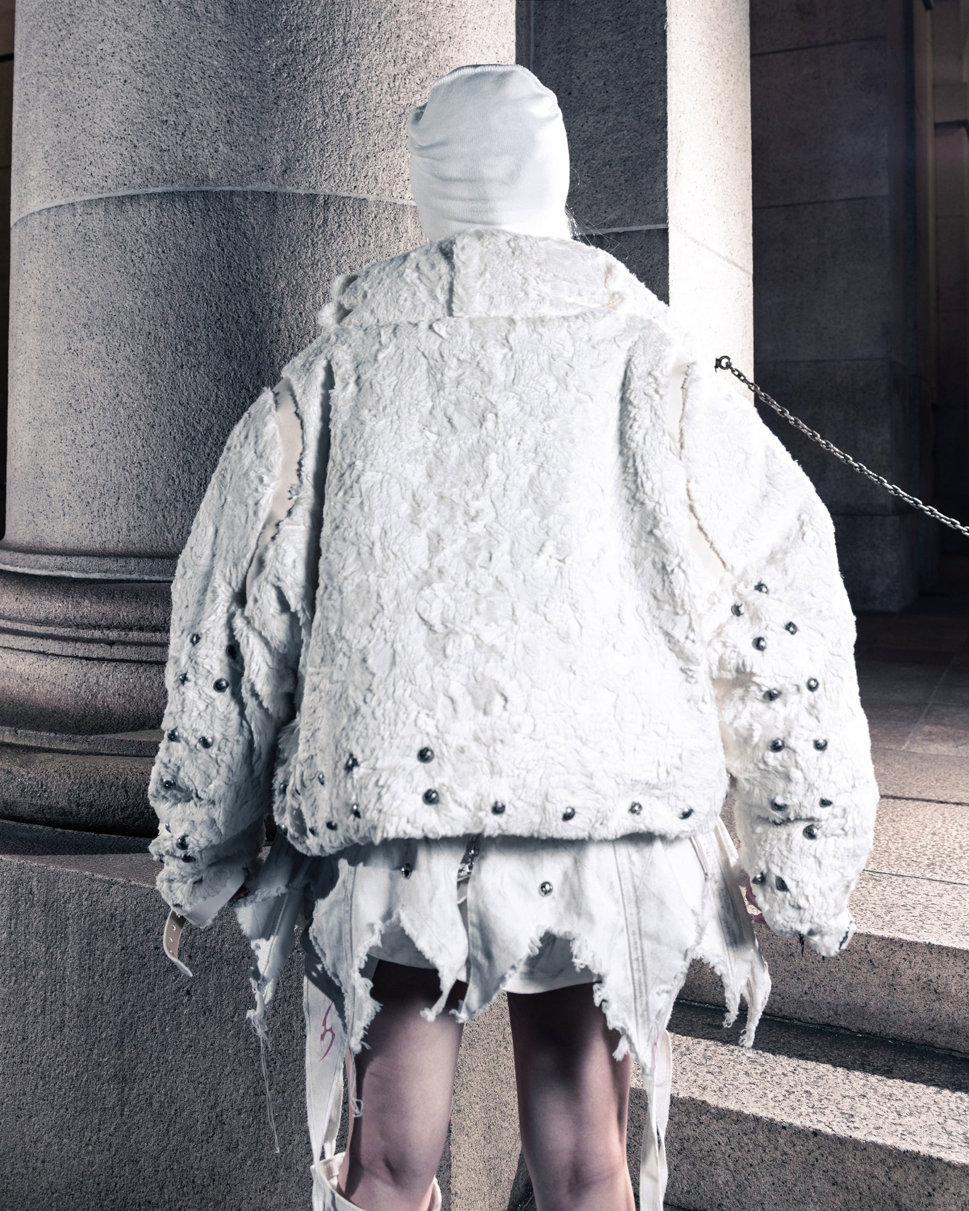 - Includes three short leather straps: one at the collar and two on the sleeves