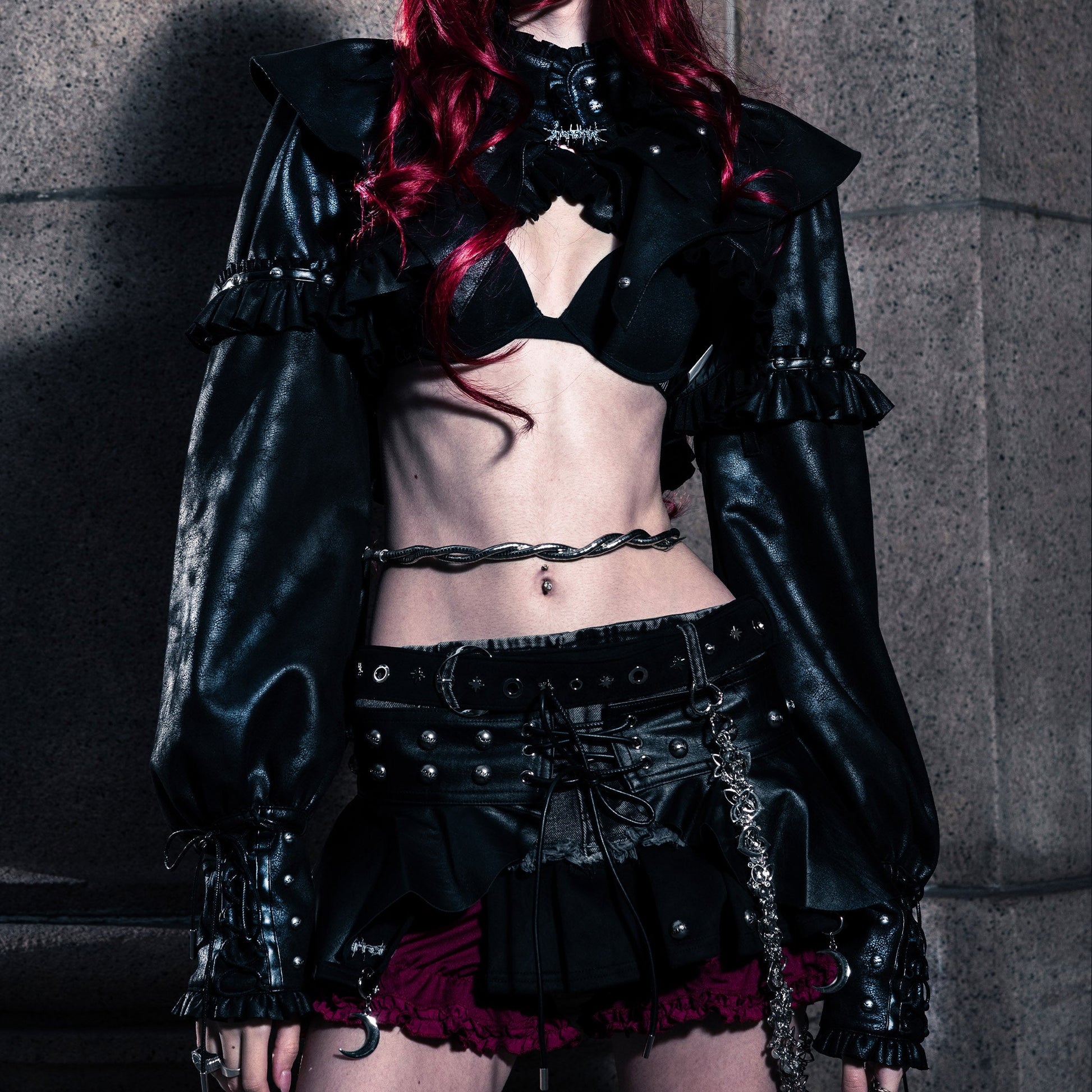 This garment is a fusion of dark aesthetics and medieval style, showcasing a distinctive design philosophy that embraces both tradition and modernity. The cross on the back not only symbolizes the essence of punk culture, reflecting a rebellious spirit, but also represents the pursuit of contemporary fashion aesthetics. This design invites wearers to express their individuality with SSN.